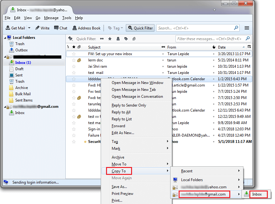 5. Use the Drag & Drop or copy/move option to transfer Thunderbird emails to Gmail folder.