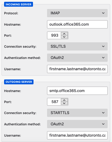 5. Enter incoming server: outlook.office365.com, port number 993 and outgoing server: smtp.office365.com, port number 587.